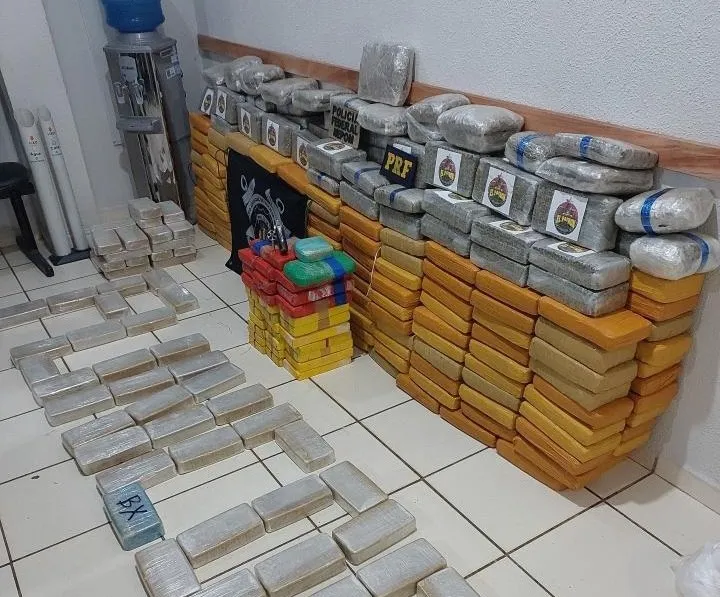 Na abordagem, foram encontradas escondidas nos sacos 72 kg de pasta base de cocaína, 316,850 kg de maconha e 33,100kg de cloridrato de cocaína.