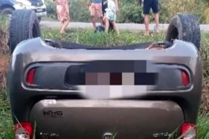 O condutor estava em estado de choque, sem condições de relatar os fatos com clareza. Testemunhas informaram que seguiam pela rodovia em direção ao distrito do 5º BEC, quando outro veículo parou à frente. Para evitar colisão traseira, o motorista realizou uma frenagem brusca, perdeu o controle da direção e acabou capotando.