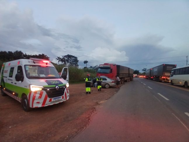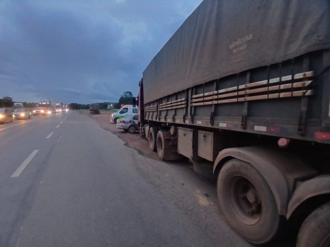 Uma carreta que seguia de Jaru sentido a Ariquemes (RO), bateu em cheio na lateral de um automóvel, na BR- 364 no trevo que dá acesso aos municípios de Theobroma e Governador Jorge Teixeira (RO). O fato aconteceu no fim da tarde de quarta-feira,4; não houve feridos apenas danos materiais.