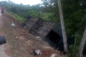 A carreta seguia sentindo ao município de Jaru, quando a parte traseira tombou.
