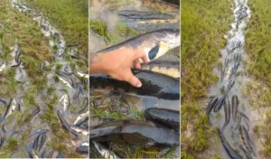 Um fenômeno curioso chamou a atenção da população de Seringueiras e região na tarde desta segunda-feira, 8 de dezembro de 2025. Um vídeo que circula nas redes sociais mostra milhares de traíras, bagres e outros peixes concentrados em um corredor formado por uma valeta, causando espanto entre moradores e curiosos.