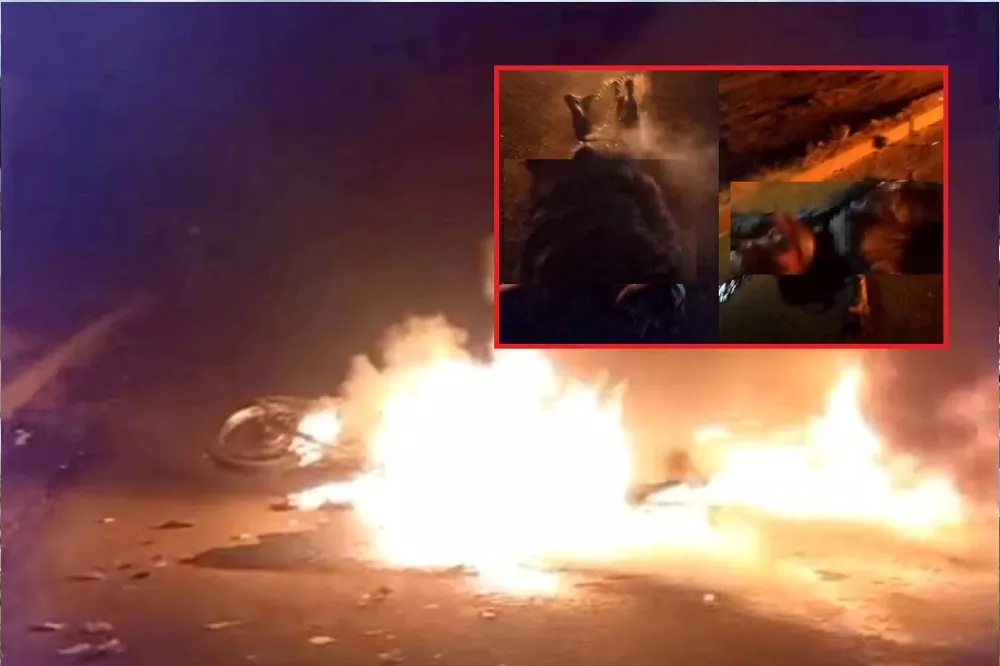 As cenas que circulam em vídeos são impublicáveis. As motos incendiaram e os dois motoristas morreram no local, uma delas teve parte do corpo queimado.