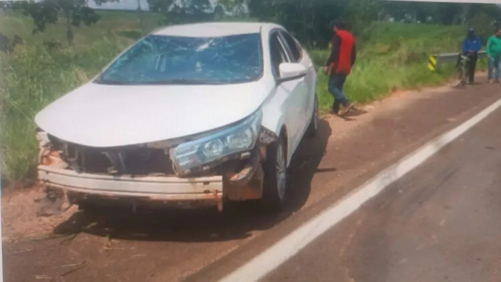 Quando a guarnição policial chegou, um caminhão guincho já estava no local, e o carro encontrava-se fora da pista, entre a vegetação, com danos significativos.