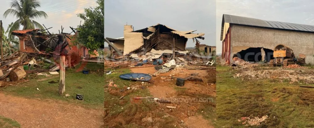 Em seguida, o bando saiu causando destruição em duas casas que foram derrubadas e ainda em um galpão que foi parcialmente danificado.