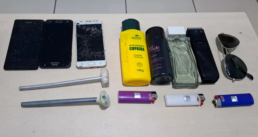 Durante a revista, foram localizados em posse dos suspeitos dois cachimbos comumente utilizados para o consumo de crack, um coldre de borracha e três aparelhos celulares danificados. Em consulta aos sistemas policiais, constatou-se que um dos envolvidos havia se evadido de uma unidade prisional durante saída temporária, não retornando ao cumprimento da pena, havendo decisão judicial determinando sua regressão ao regime fechado. O indivíduo possui diversas passagens por crimes de furto em outros municípios do Estado de Rondônia e afirmou responder a mais de quinze processos criminais por furto ou roubo.