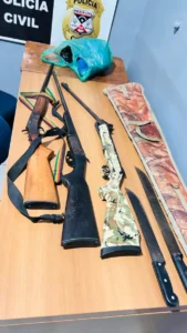 Foram cumpridas oito ordens judiciais de busca e apreensão e seis endereços na zona urbano e dois na zona rural do município havendo a prisão de duas pessoas em flagrante por porte ilegal de arma de fogo e apreensão de três armas e munições. Inclusive foram apreendidas várias munições de fuzil (em tese 7,622mm ) de uso restrito.