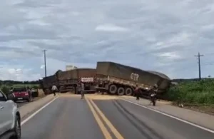 Motoristas que passam pelo trecho enfrentam retenções e devem buscar rotas alternativas até que a rodovia seja liberada. Ainda não há confirmação oficial sobre feridos ou a gravidade das consequências do acidente. As causas da colisão deverão ser apuradas pelas autoridades competentes.