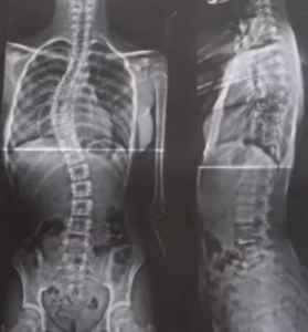 A doença é considerada rara e de causa desconhecida, surgindo durante a fase de crescimento, a partir dos 10 e 11 anos. Trata-se de uma alteração na coluna vertebral, fazendo com que ela faça uma curva para um dos lados, em formato de “C” ou “S”.