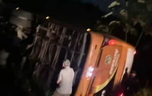 Um ônibus da empresa Trans Acreana tombou no km 23 da BR-364, sentido Sena Madureira – Rio Branco, na noite da última terça-feira (2). As primeiras informações apontam que 42 passageiros estavam no veículo no momento do acidente. Não há registro de mortes.