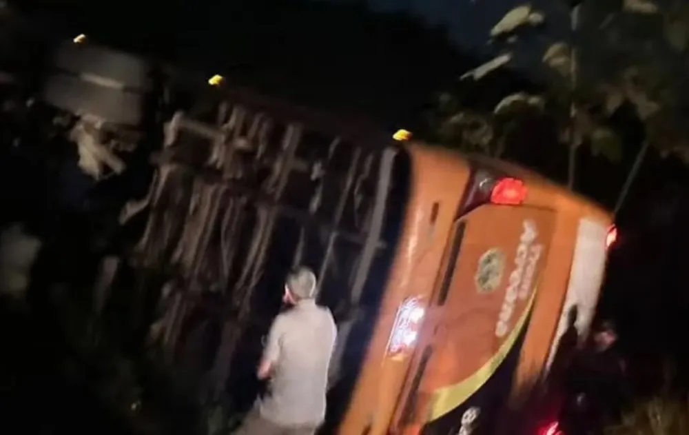 O motorista informou à polícia que perdeu o controle do ônibus após atingir um buraco na rodovia.