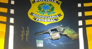Agentes da Polícia Rodoviária Federal prenderam um homem na BR-174, em Vilhena, após encontrarem um revólver calibre .38 e cerca de dois gramas de cocaína escondidos com ele durante uma abordagem de rotina.