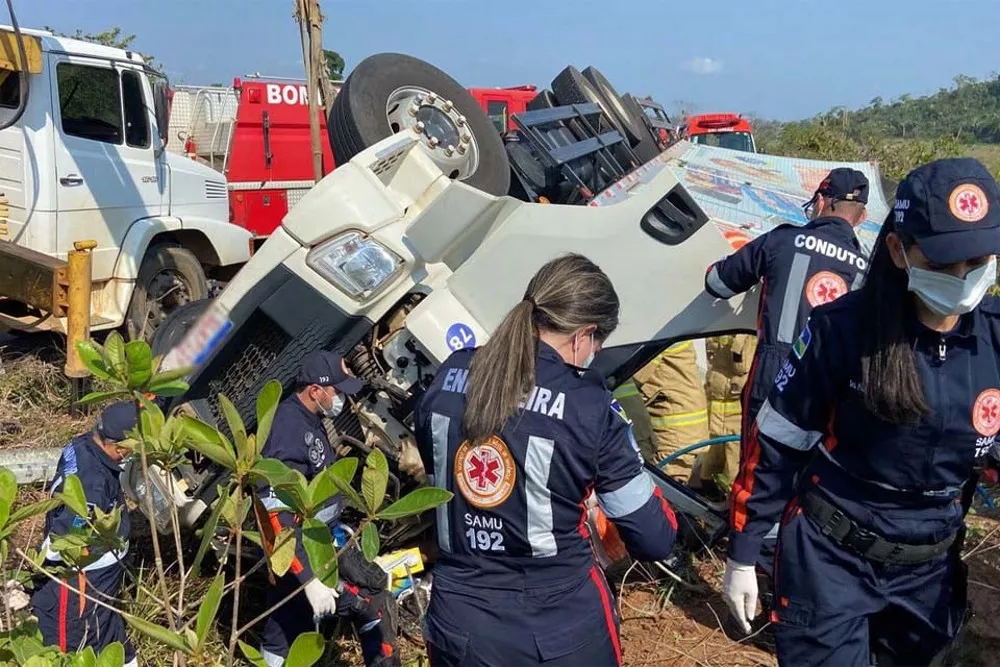O Serviço de Atendimento Móvel de Urgência (Samu) de Rio Crespo foi acionado na manhã desta quinta-feira (18), por volta das 8h30, para atender a um acidente na RO-459, km 11, rodovia que liga o município à BR-364. A ocorrência envolveu o tombamento de um caminhão carregado de alimentos e deixou duas pessoas presas às ferragens.