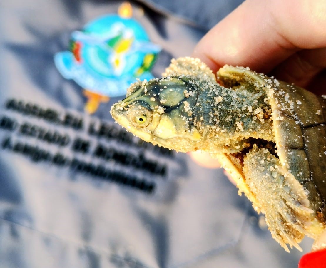 A eclosão é um dos momentos mais aguardados do processo reprodutivo. Também é um dos mais vulneráveis. Ao romper a areia, os filhotes enfrentam predadores como urubus e outras aves. No rio, o risco vem de jacarés e peixes de maior porte.