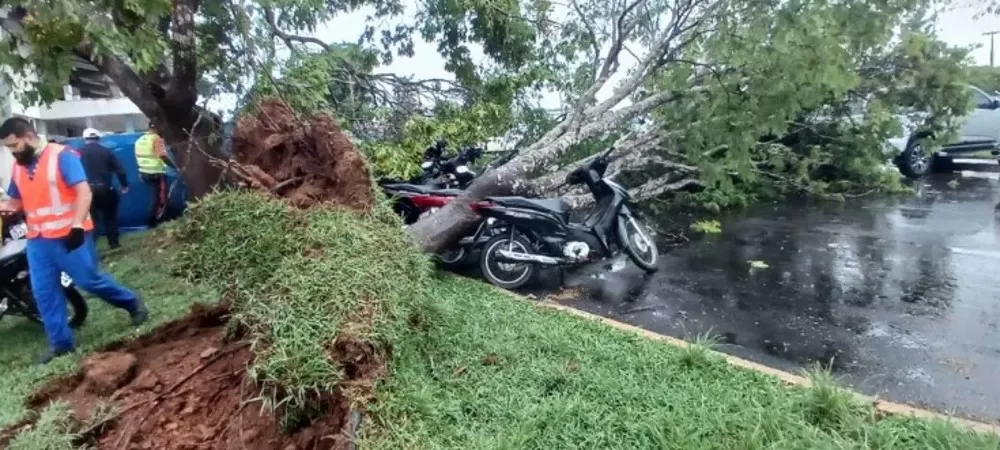 Registros mostram árvores caídas sobre carros e ruas, telhas espalhadas pelas vias e danos em imóveis – Foto: Reprodução